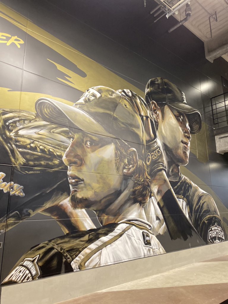 球場内には、北海道から世界に羽ばたいた大谷翔平選手とダルビッシュ有選手が飾られていました。