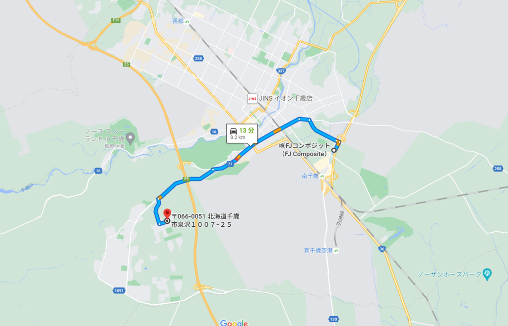 新工場の立地は「泉沢向陽台」です。本社から少し離れますが、変わらず千歳市です。