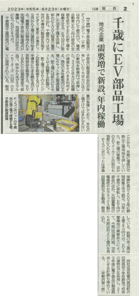 本日2023年8月23日(水)北海道新聞の朝刊に、FJコンポジットが掲載されました。