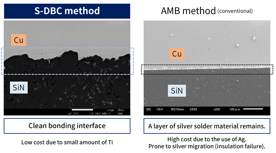 Unlike the conventional AMB method, no silver solder is used, so there is no occurrence of silver migration (insulation failure).